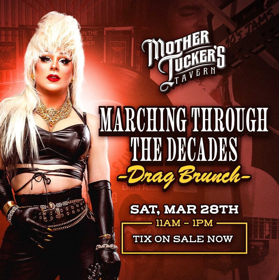 Get ready to relive the greatest hits, iconic looks, and unforgettable moments from every era at Mother Tucker Tavern's "Marching Through the Decades" Drag Brunch!