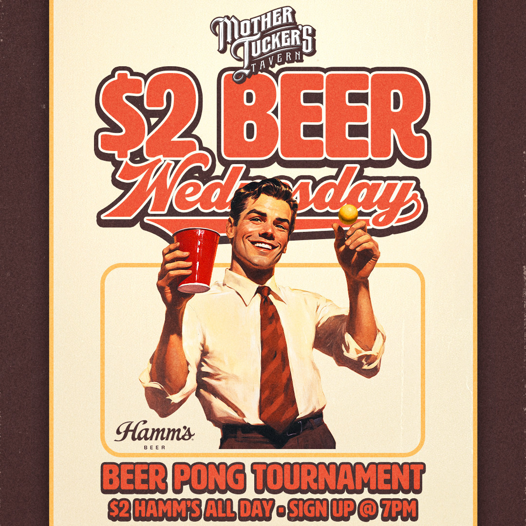 Join us at Mother Tucker's Tavern for $2 Beer Wednesdays and show off your skills in our epic beer pong tournament!