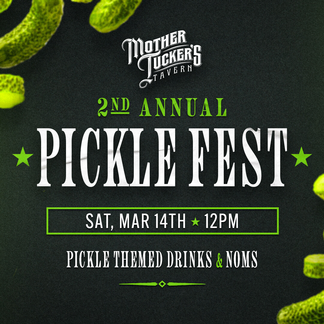 Join us at Mother Tucker's for our 2nd Annual Pickle Fest on March 14th starting at 12pm. Enjoy a day full of pickle themed drinks, food, and plenty of dill-icious fun!